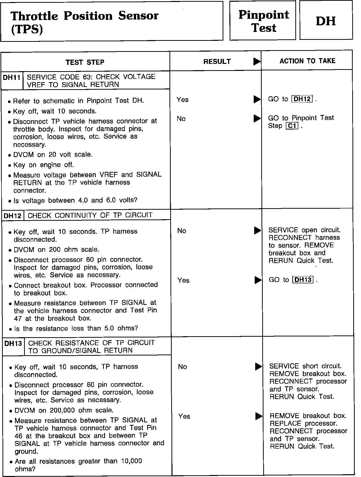 Pinpoint Test DH11 Thru DH13 - Throttle Position Sensor (TPS):