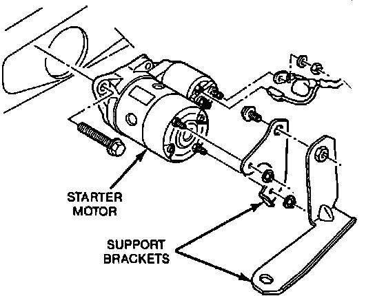 5. Reverse procedure to install, torque starter motor retaining bolts to 23-34 ft.lbs.