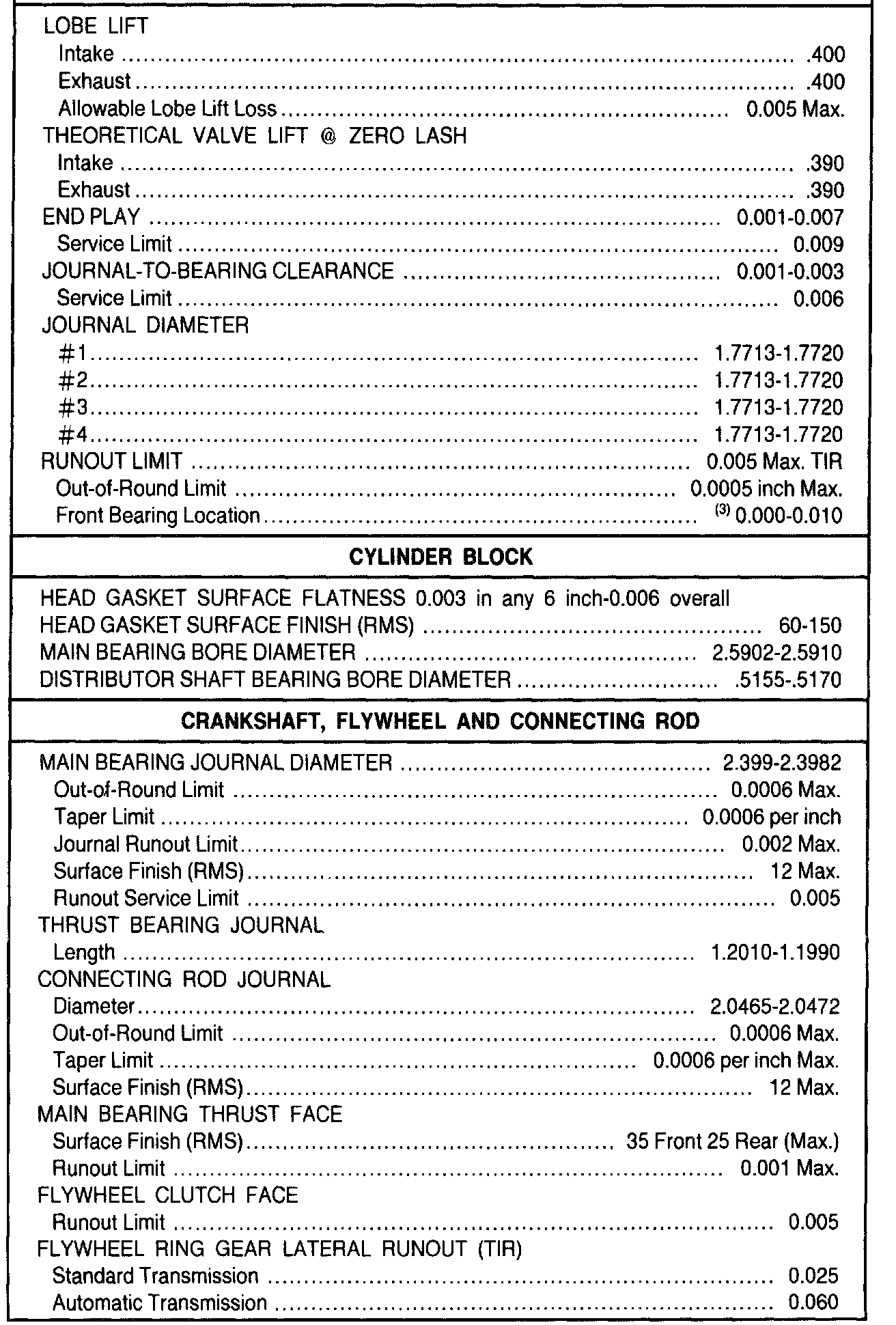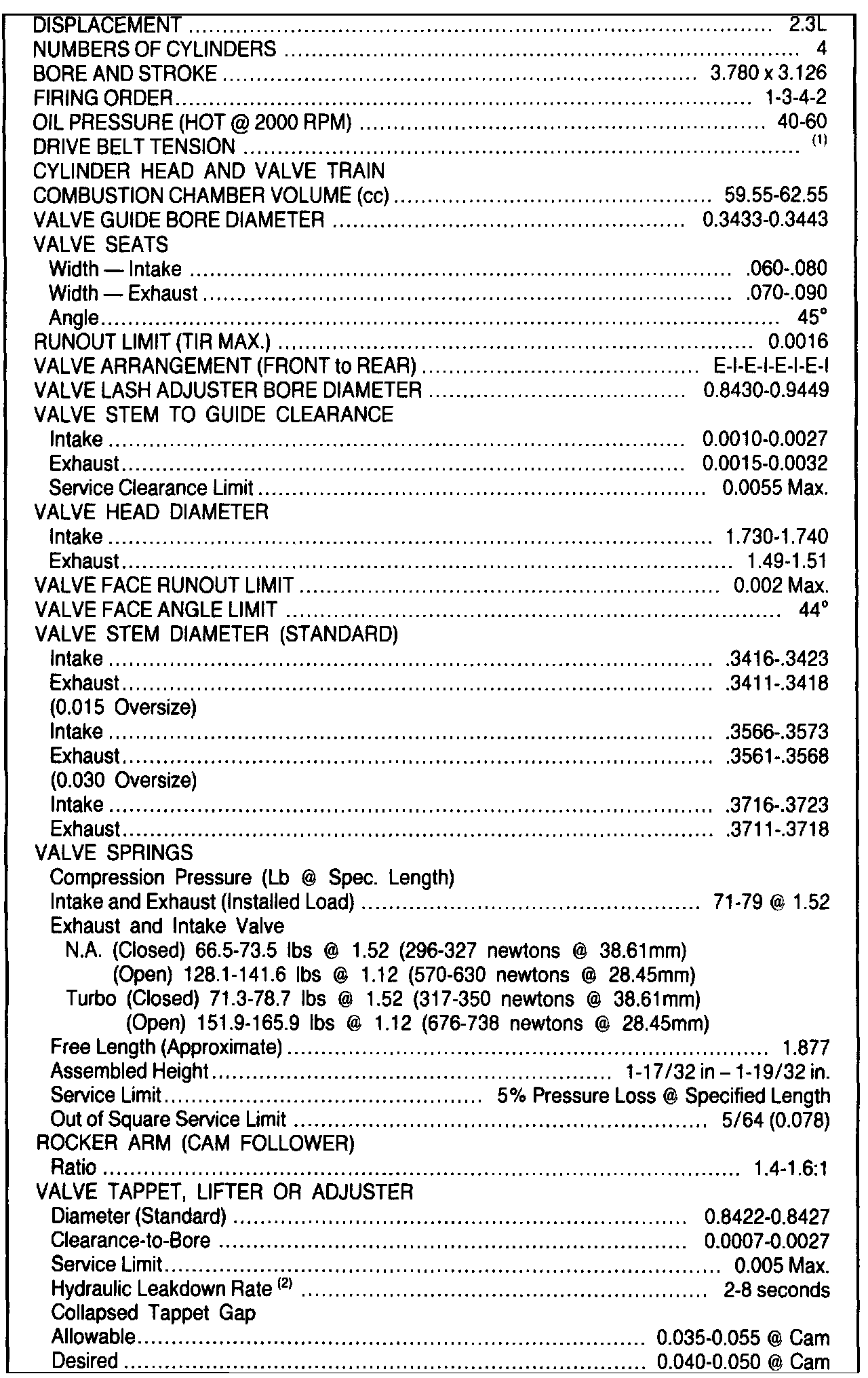 (2) Time required for plunger to leak down 1/8 inch of travel with 50 lb load leakdown fluid in lash adjuster.