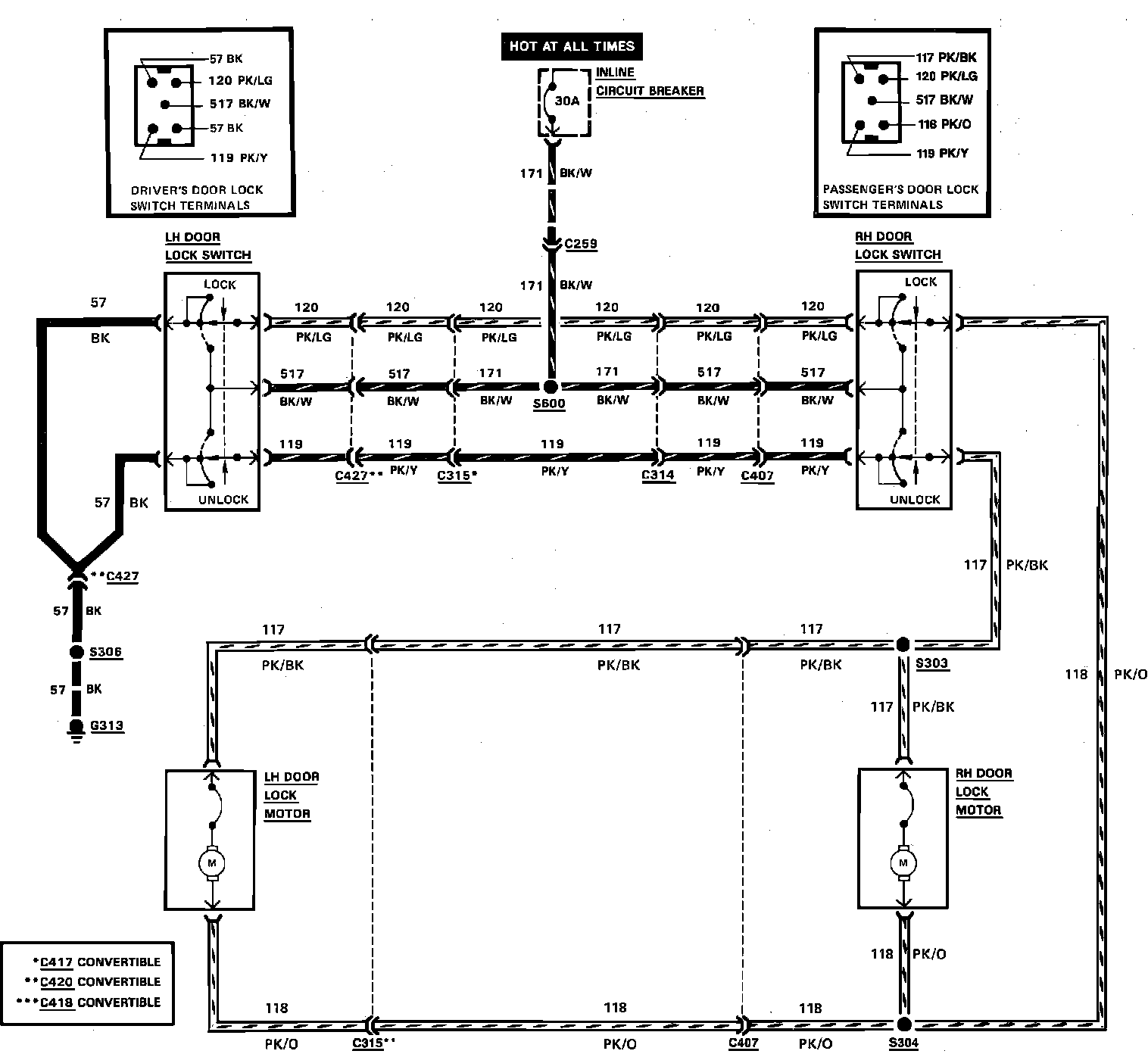 Power Door Locks Wiring Circuit:
