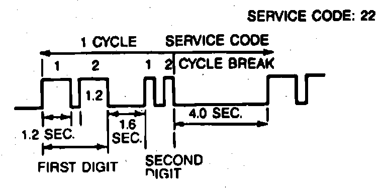 3. Second digit of service code (ones position): The digit in the ones position of the service code represents the number of times the buzzer is on the 0.4 seconds during one cycle, Fig. 18.
