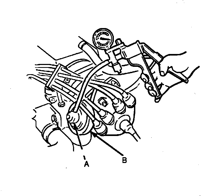 4. Connect Rotunda Vacuum Tester 021-00037 to distributor vacuum advance, A chamber.