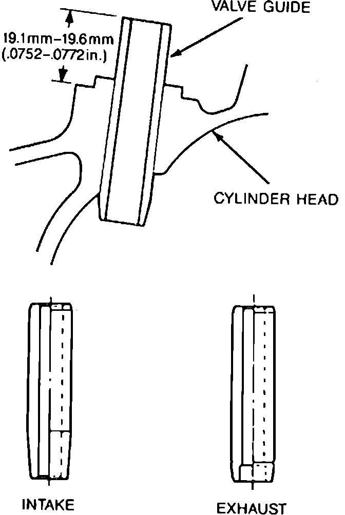 3. Using tool mentioned above, drive in new guides. When properly installed, guides should protrude .752-.772 inch above cylinder head as shown in Fig. 6.