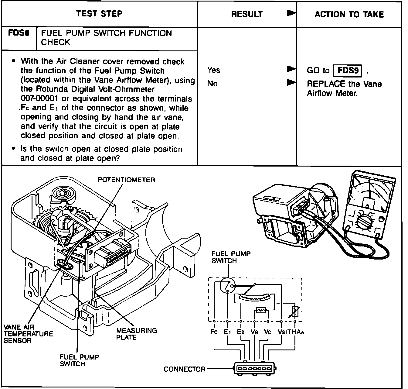 FDS8 - FUEL PUMP SWITCH FUNCTION CHECK: