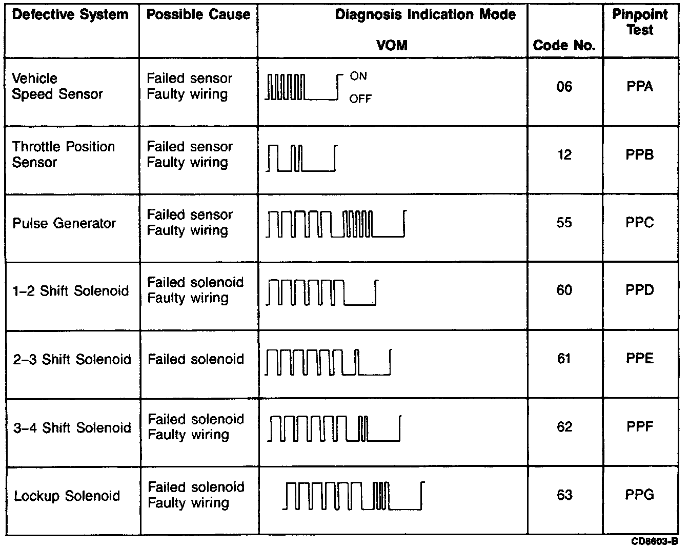 Key On Engine Off Code Chart