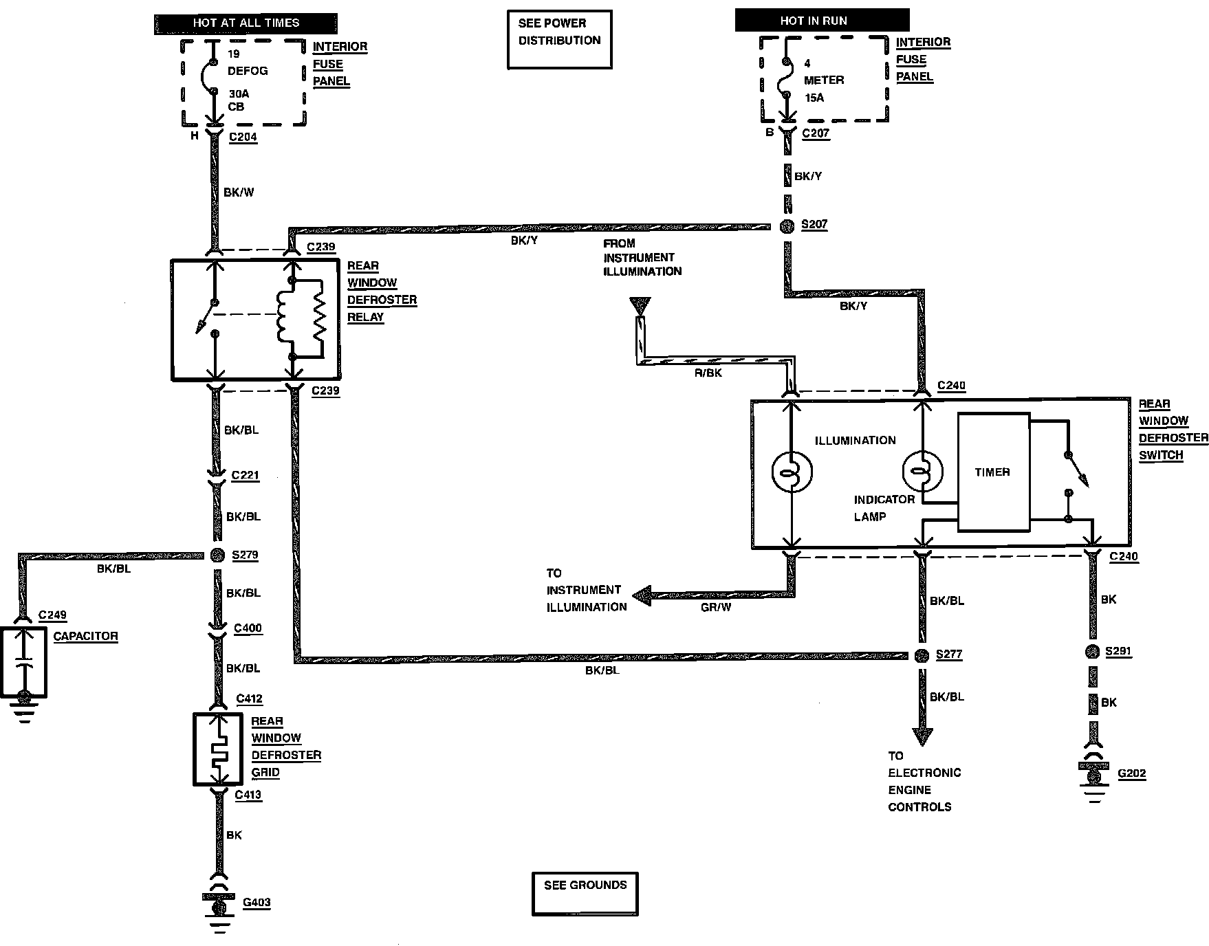 Rear Defroster Wiring Circuit: