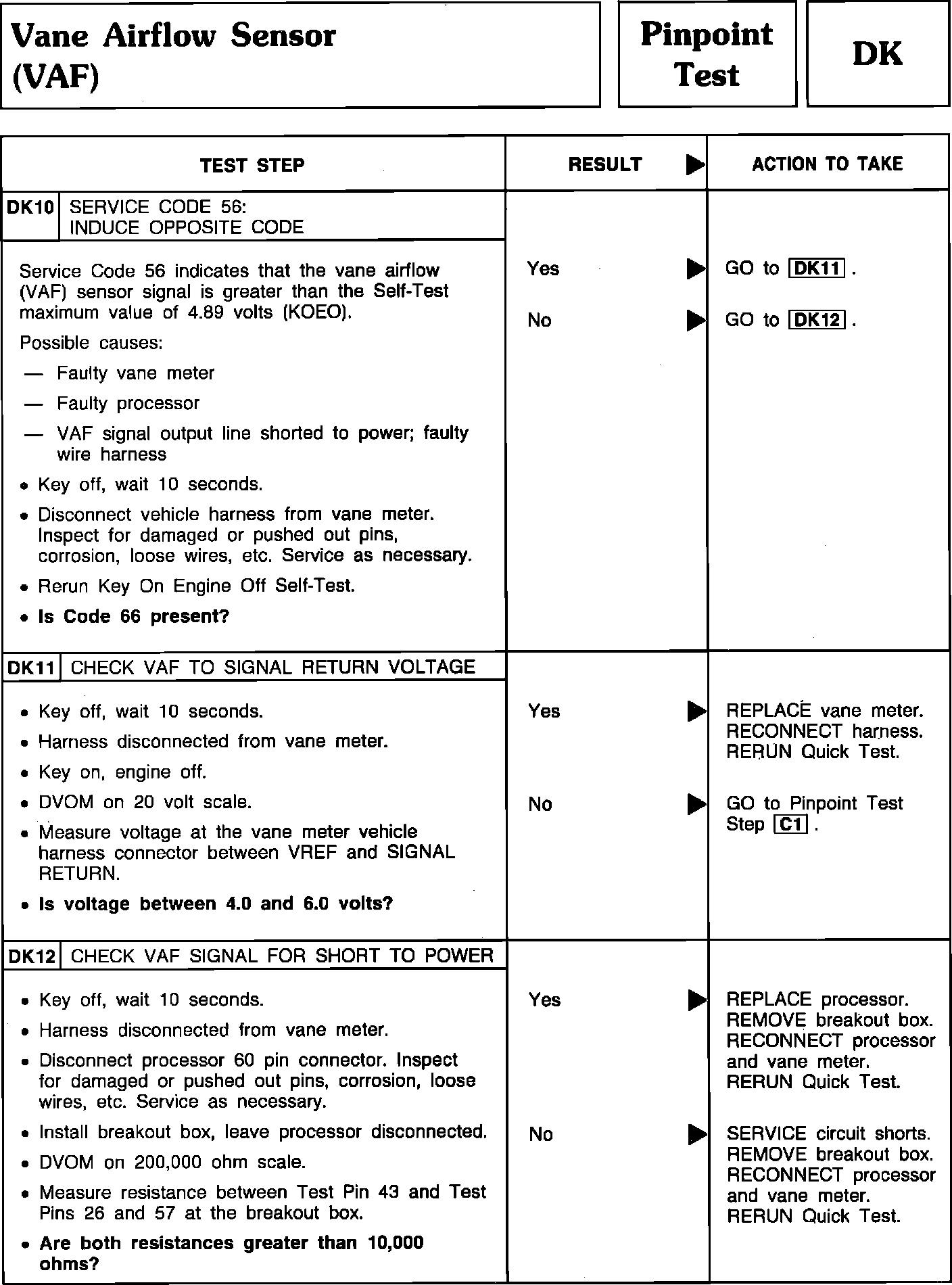 Pinpoint Test DK10 thru DK12 - Vane Airflow Sensor (VAF):