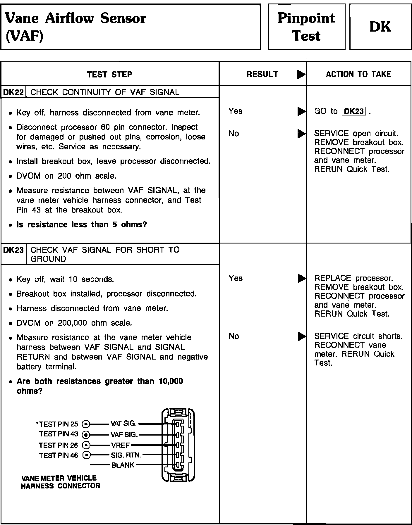 Pinpoint Test DK22 & DK23 - Vane Airflow Sensor (VAF):