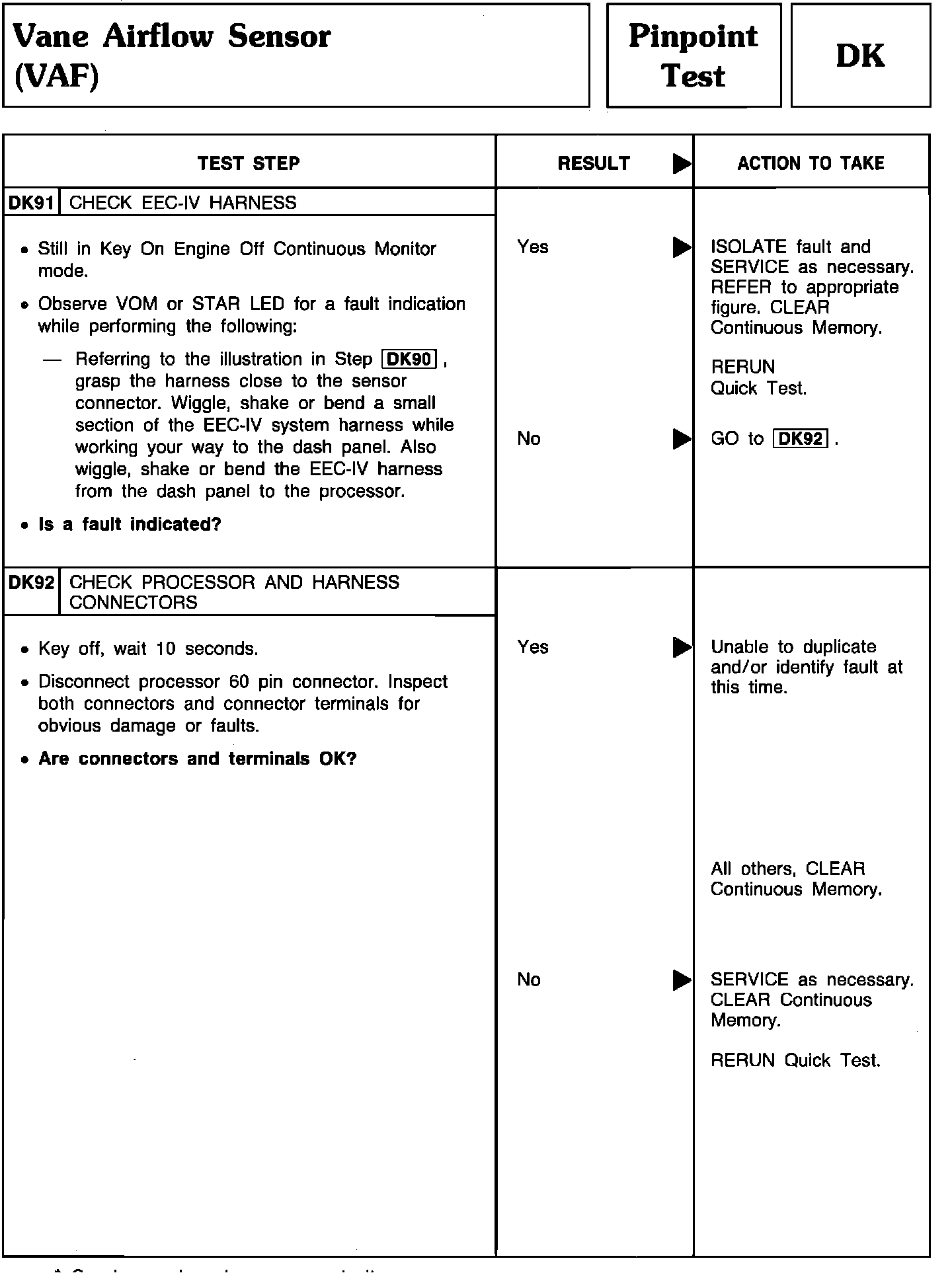 Pinpoint Test DK91 & 92 - Vane Airflow Sensor (VAF):