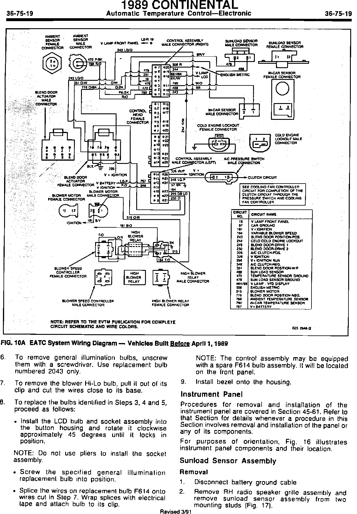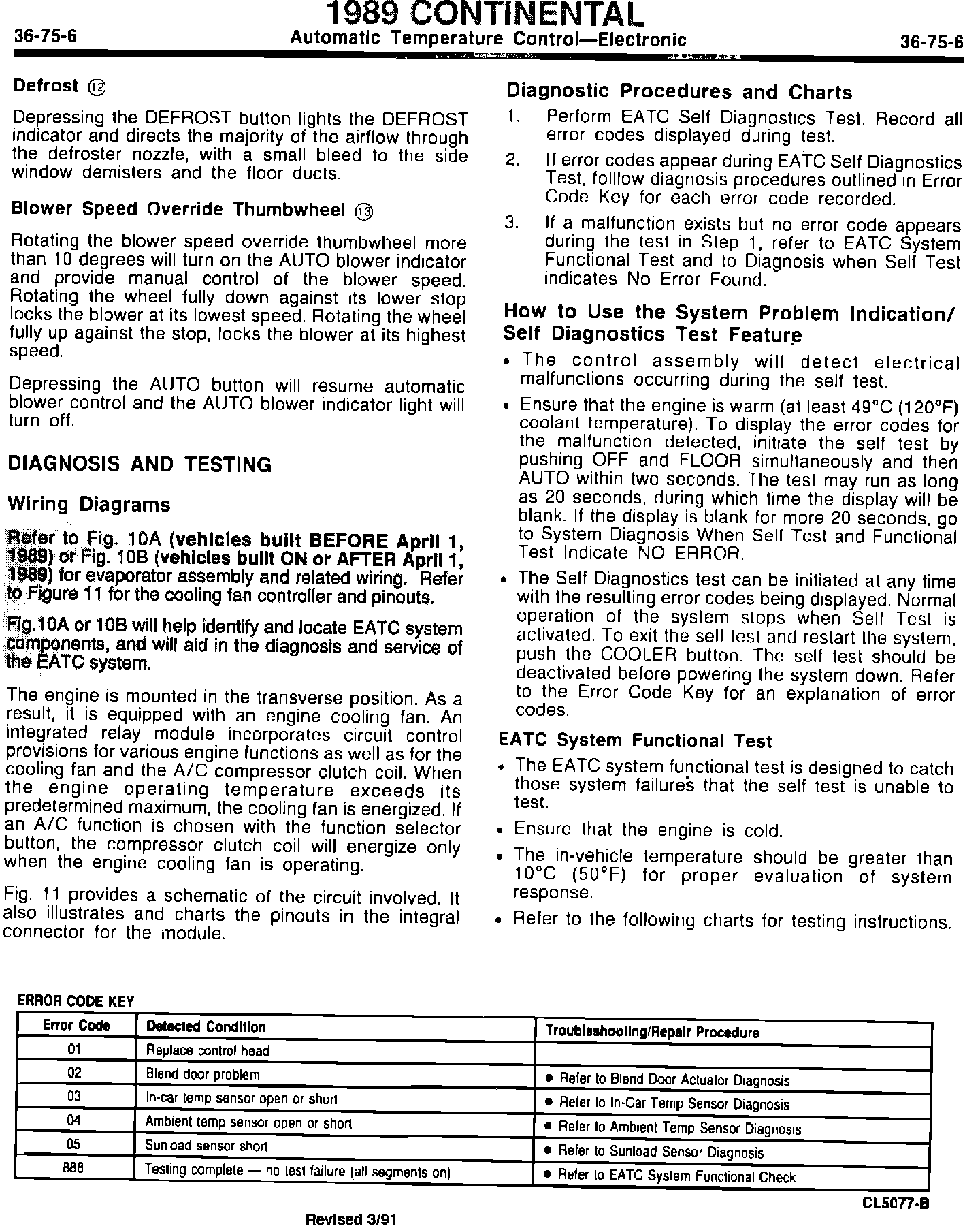 1989 Continental Automatic Temperature Control