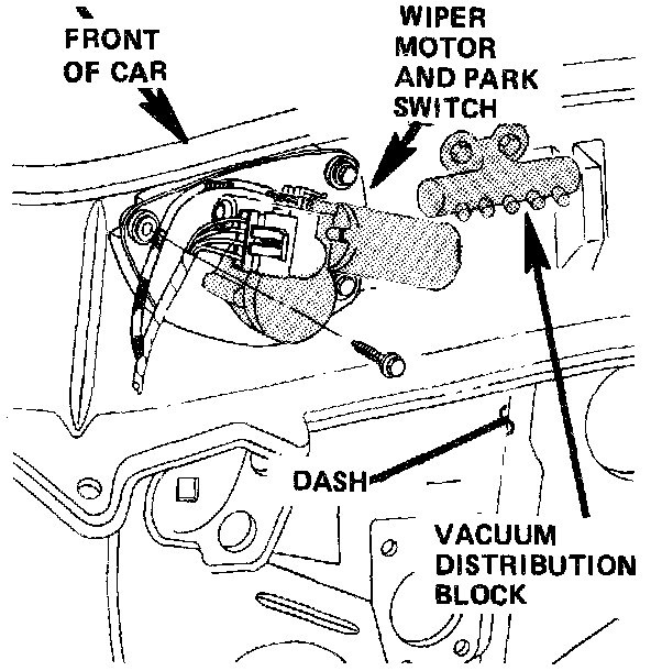 The Front Wiper Motor and Park Switch are located in Front of the Left Hand side of the dash.