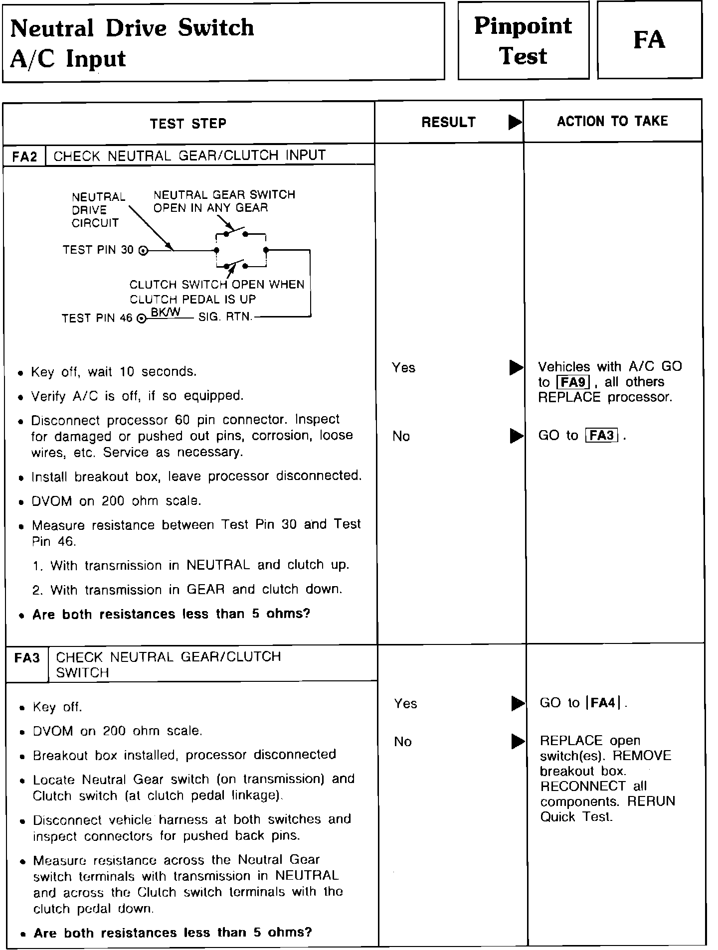 Pinpoint Test FA2 & FA3 - Neutral Drive Switch A/C Input: