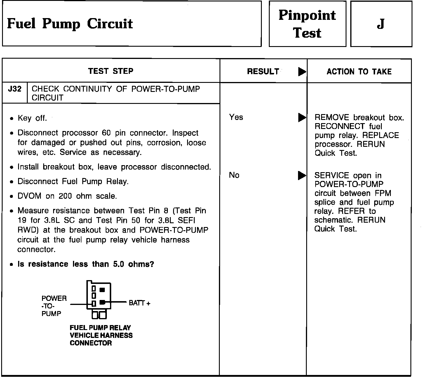 Pinpoint Test J32 - Fuel Pump Circuit: