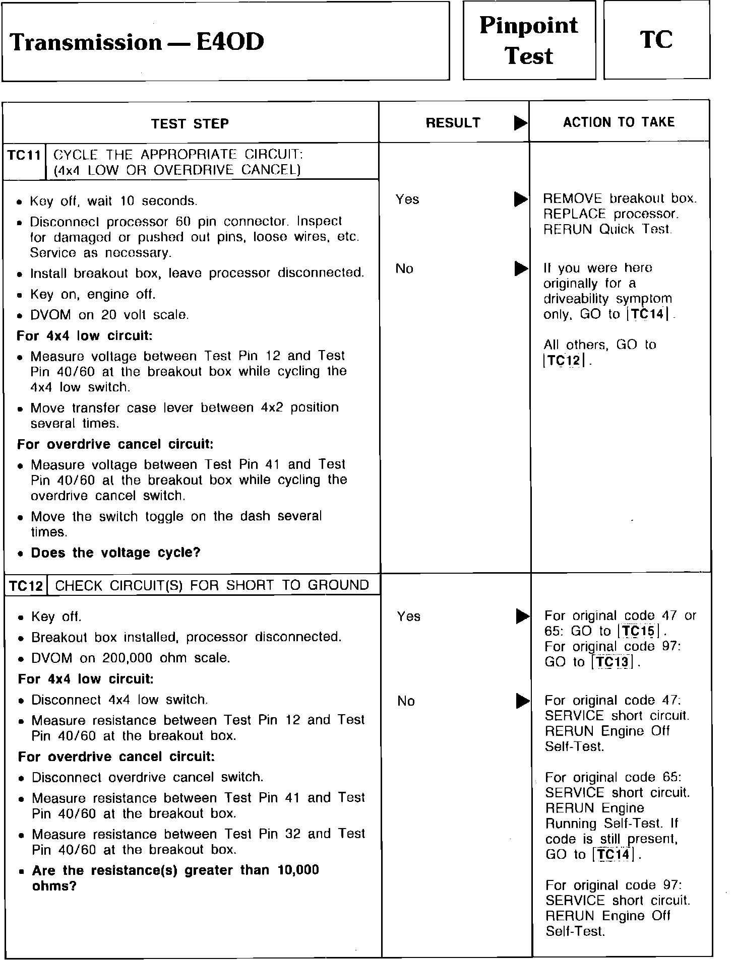 Pinpoint Test TC11 & TC12 - Transmission E4OD: