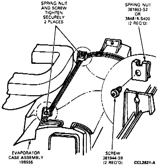 2. Position evaporator core in case and close cutout cover.