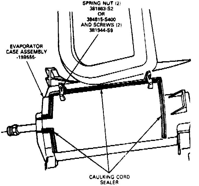 4. Install Caulking Cord D9AZ-19560-A or equivalent to seal evaporator case against leakage along cut line (Fig. 34).