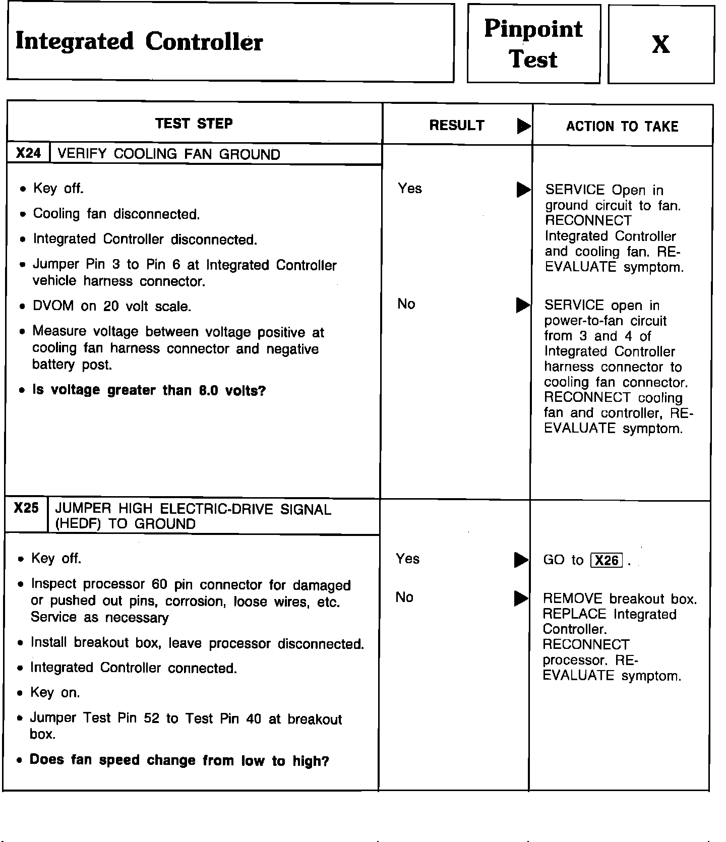 Pinpoint Test X24 Thru X25 - Integrated Controller: