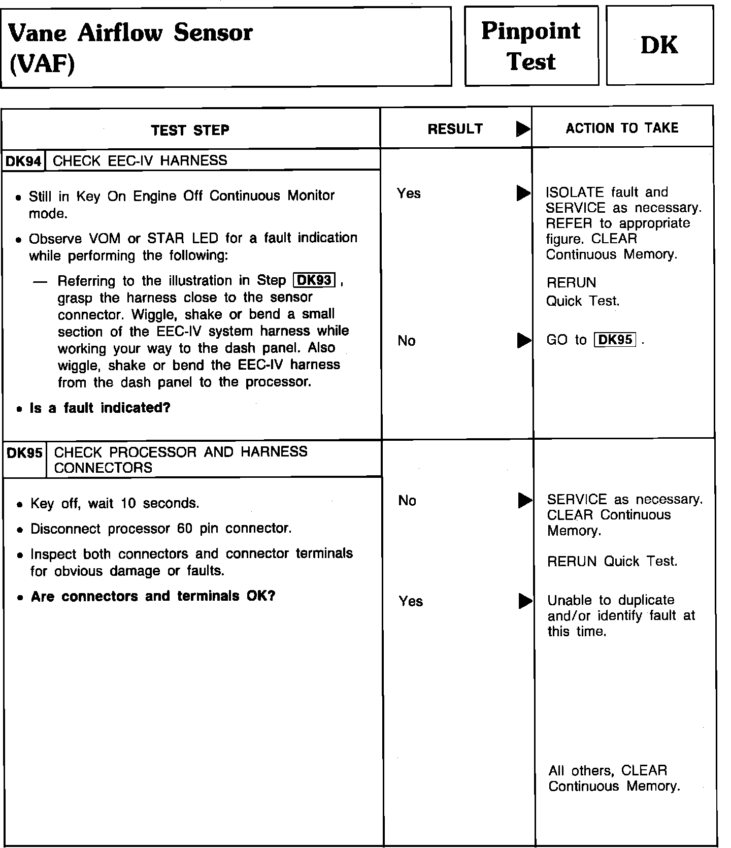Pinpoint Test DK94 & DK95 - Vane Airflow Sensor (VAF):
