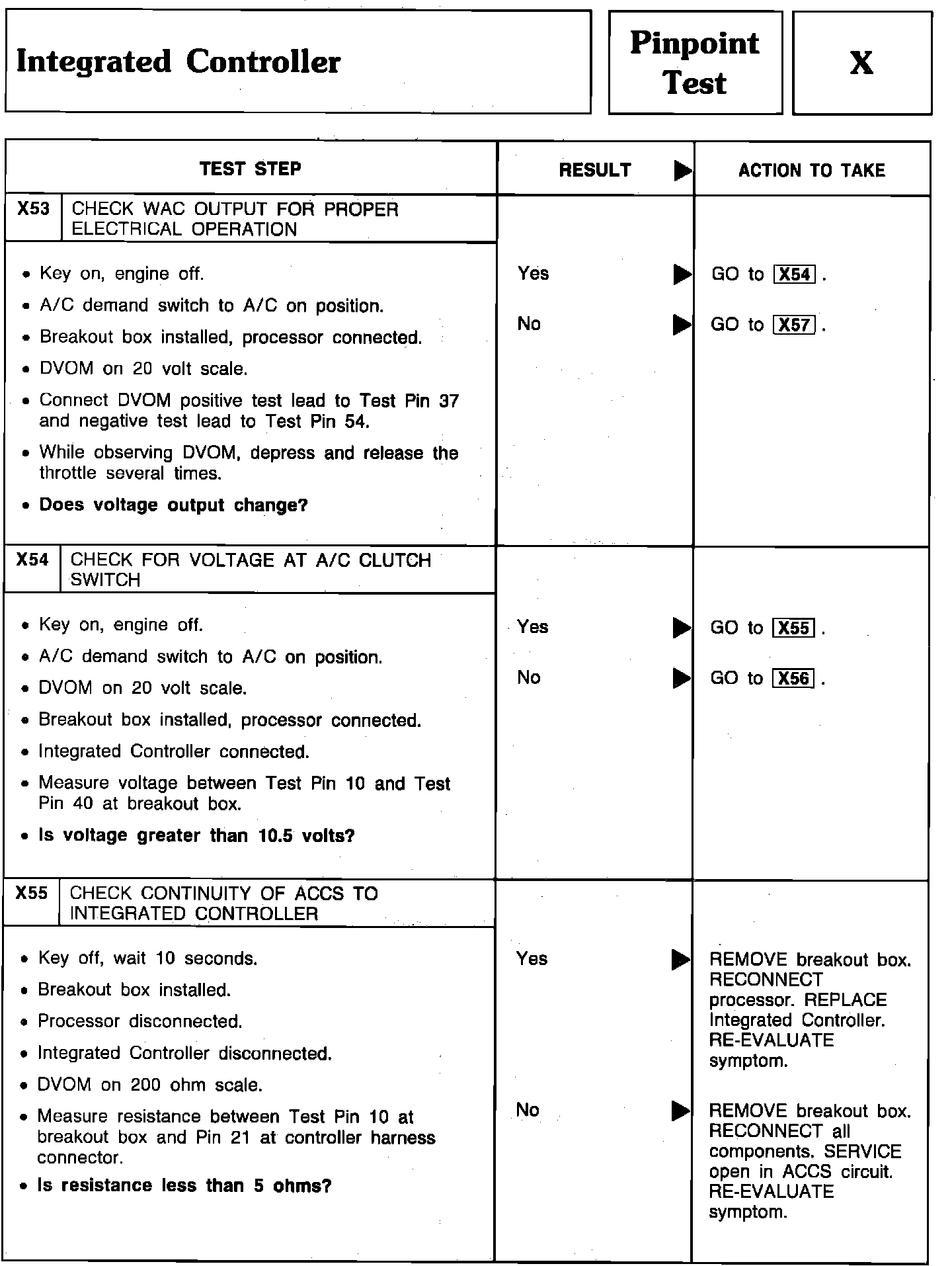 Pinpoint Test X53 Thru X55 - Integrated Controller: