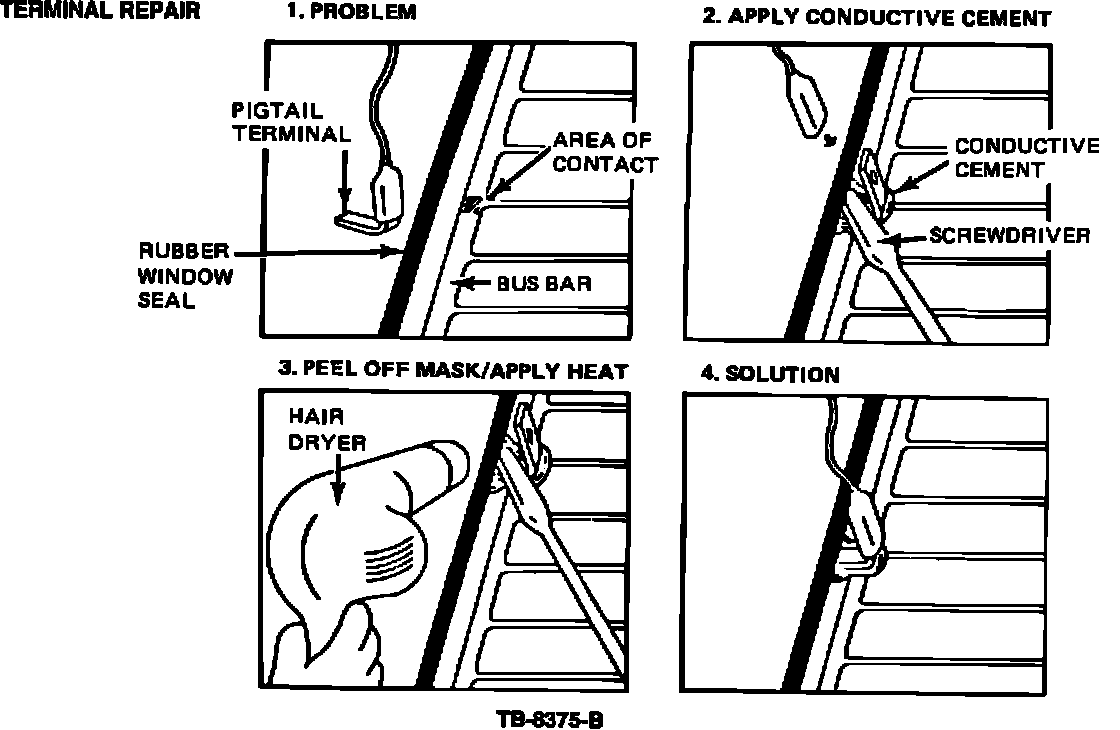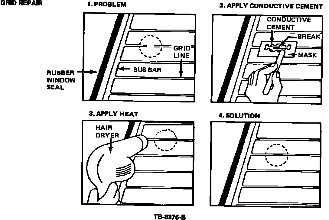 ISSUE: An inoperative electric rear window defroster (heated backlites) may be caused by bond separation of the pigtail terminal to bus bar or broken grid lines.