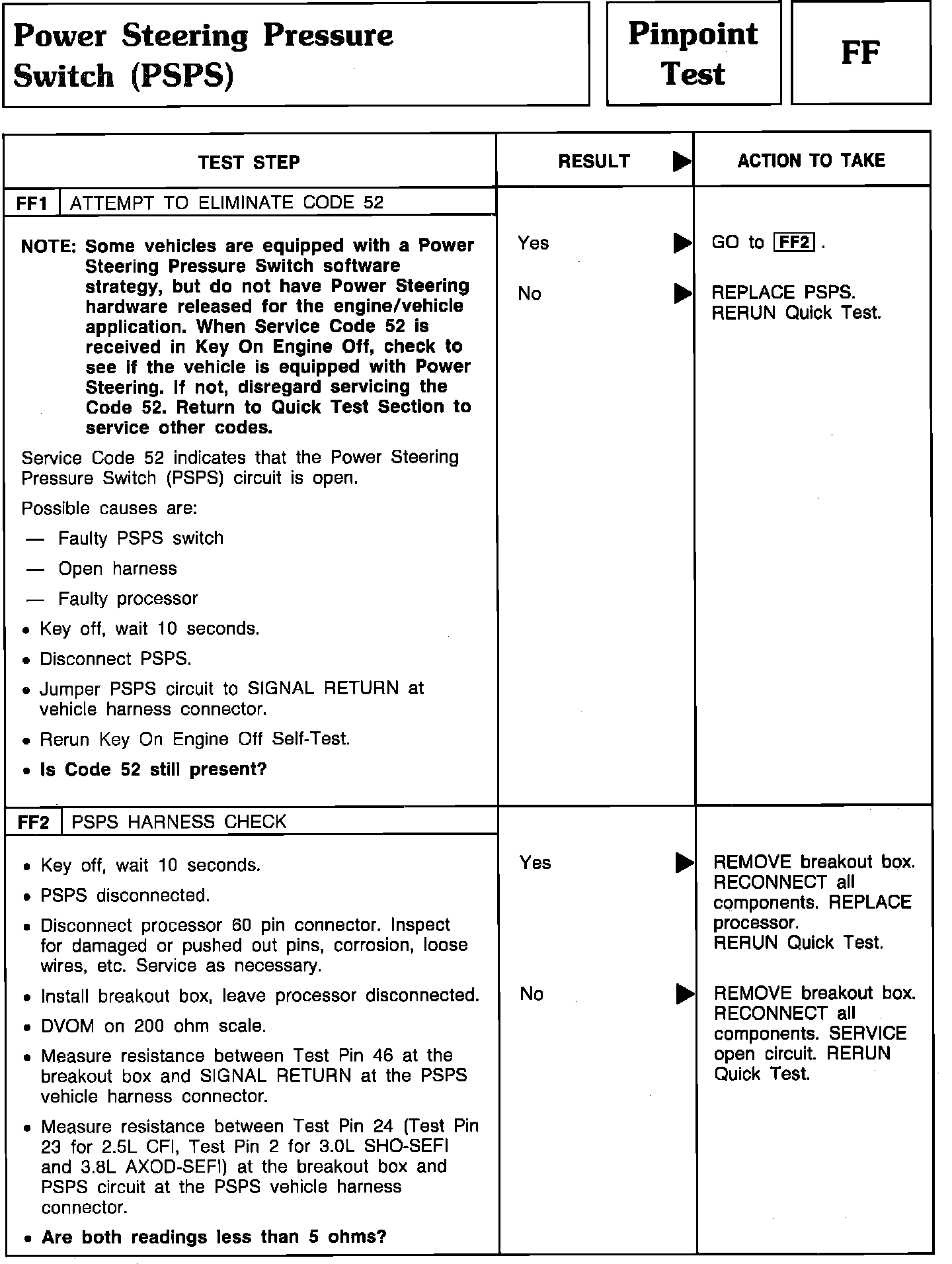 Pinpoint Test FF1 Thru FF2 - Power Steering Pressure Switch (PSPS):
