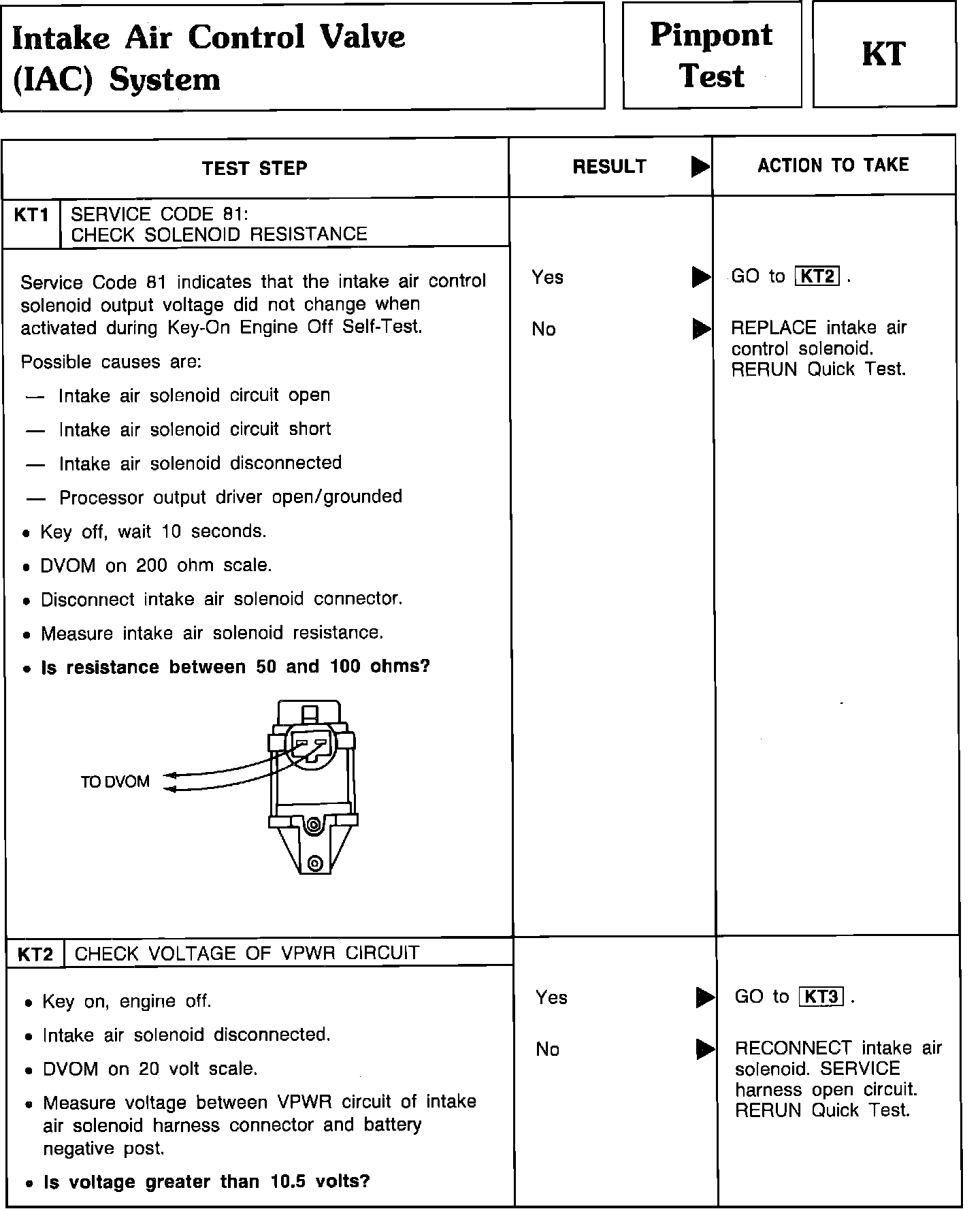 Pinpoint Test KT1 Thru KT2 - Intake Air Control Valve System: