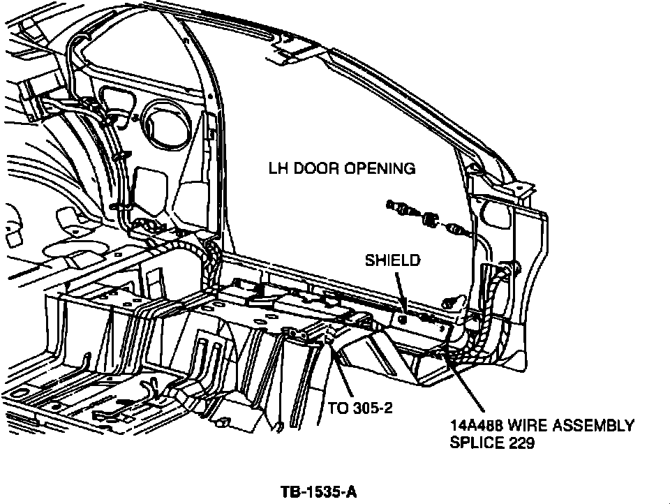 5. Pull back the carpet to expose the 14A488 wire assembly, Figure 1.