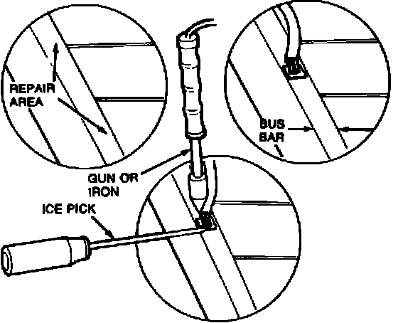 4. Work as quickly as possible to avoid overheating glass. Tin bus bar with solder in area where terminal will be reattached.