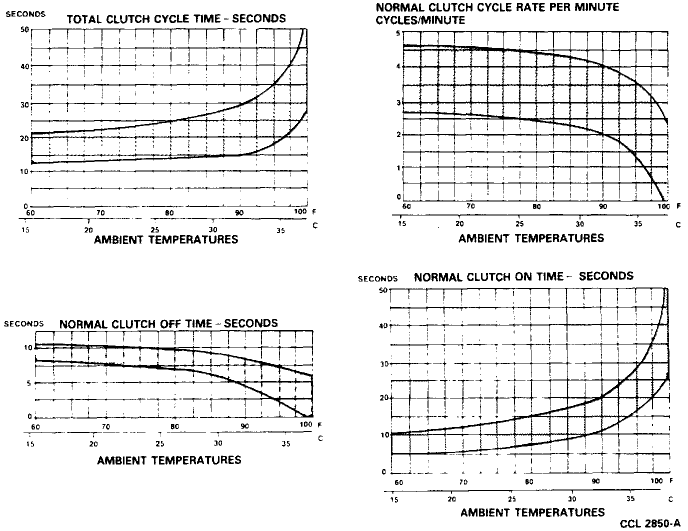 ^ Clutch cycle times are the lengths of time (in seconds) that the clutch is ON and OFF.