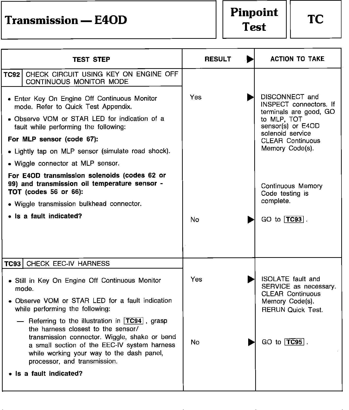 Pinpoint Test TC92 & TC93 - Transmission E4OD: