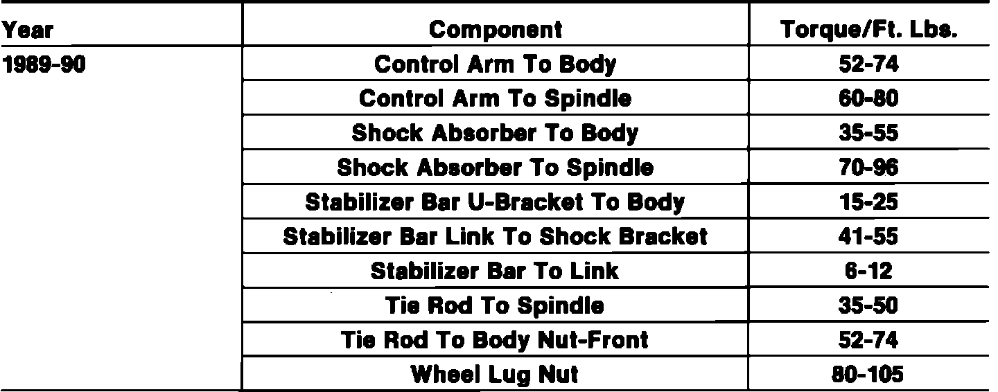 Tightening Specifications: