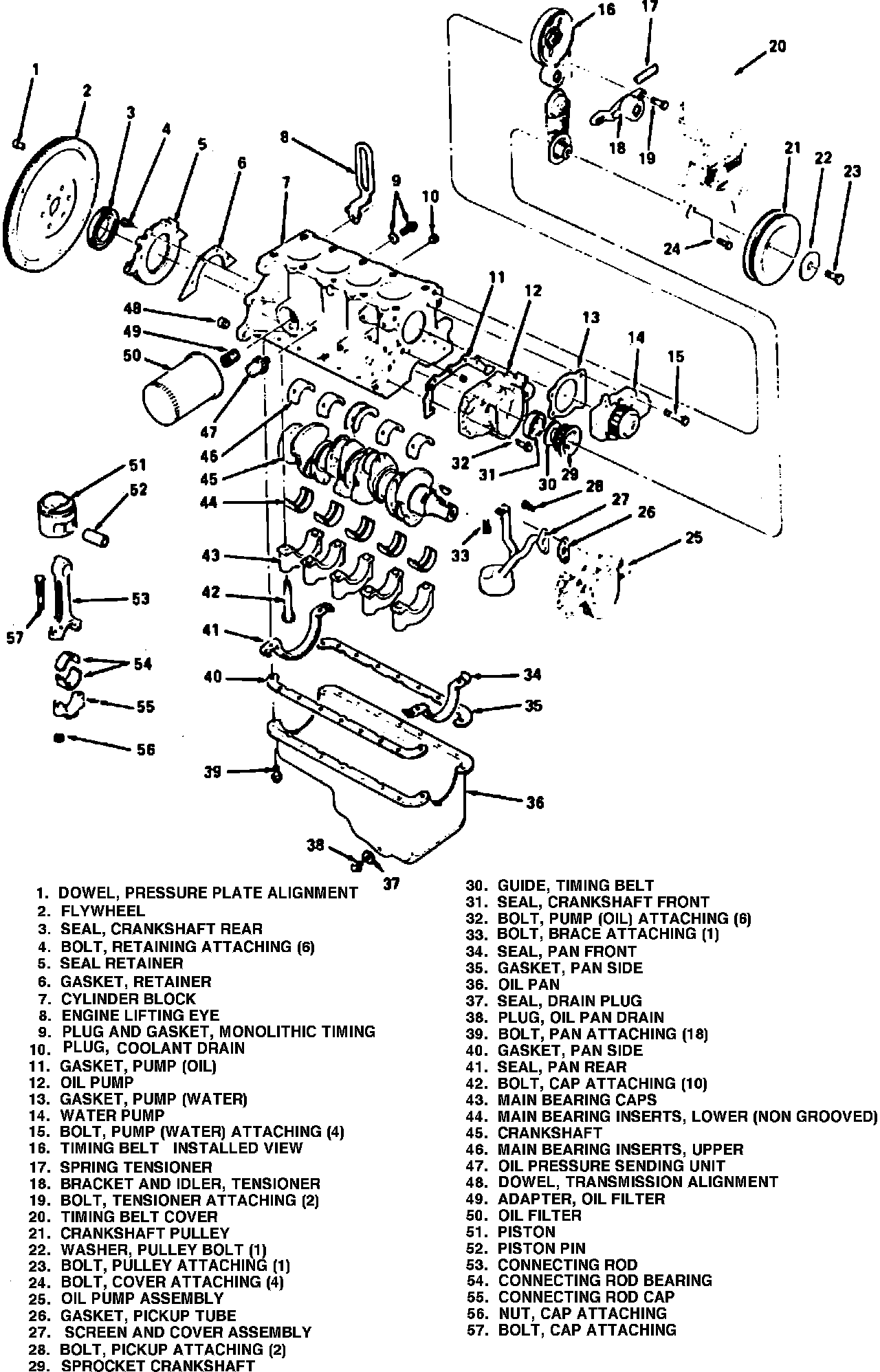 Exploded View Of Cylinder Block, Crankshaft & Related Components: