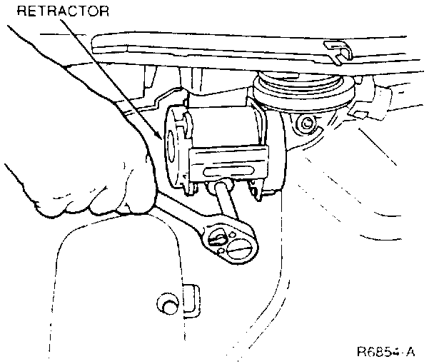 4. Position the retractor and install the mounting bolt and washer. Tighten the bolt to 38-78 Nm (28-58 ft lbs).