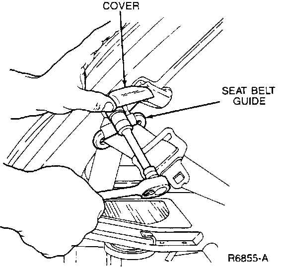 4. Lift the guide cover and remove the seat belt guide bolt and washer.