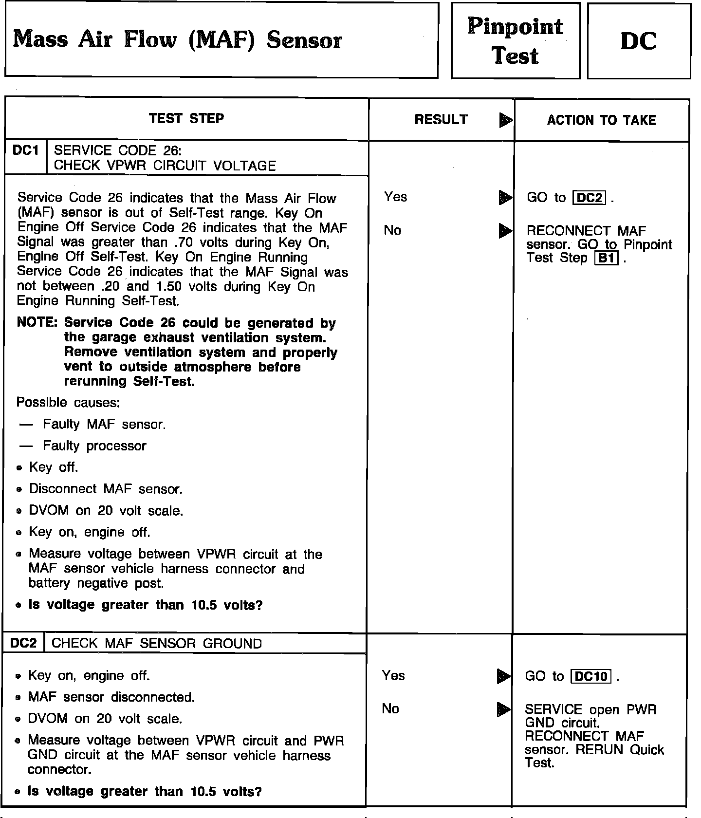Pinpoint Test DC1 & DC2 - Mass Airflow Sensor (MAF):