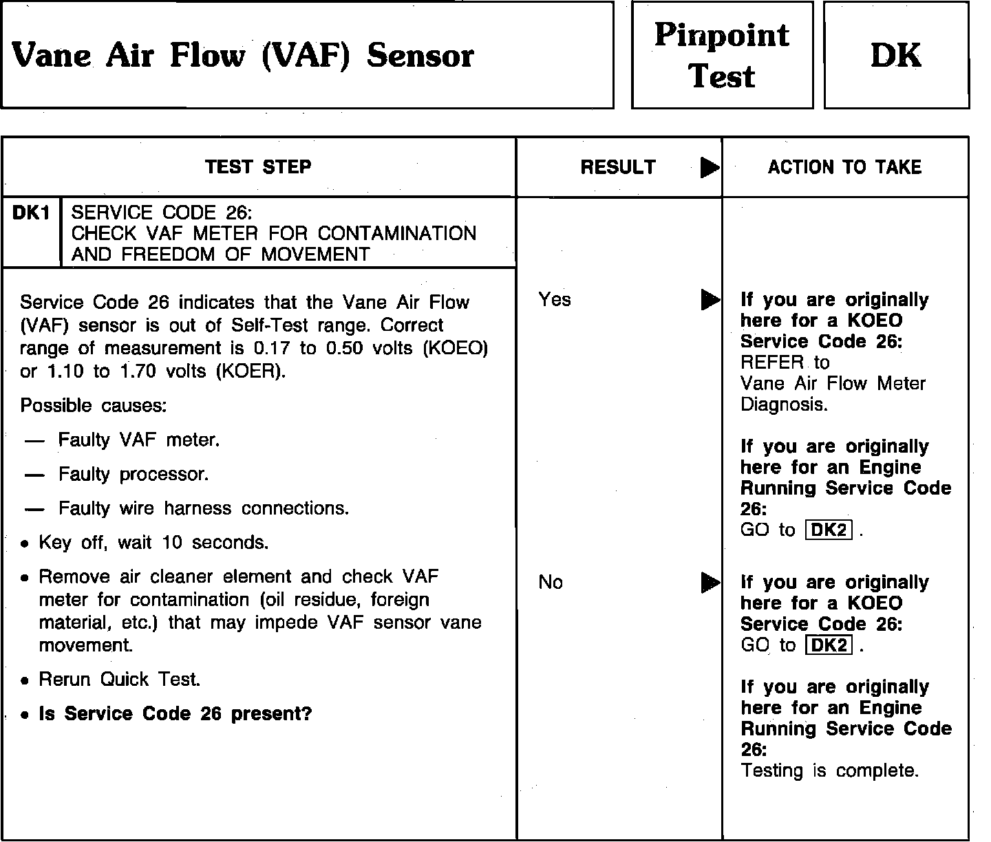 Pinpoint Test DK1 - Vane Airflow Sensor (VAF):