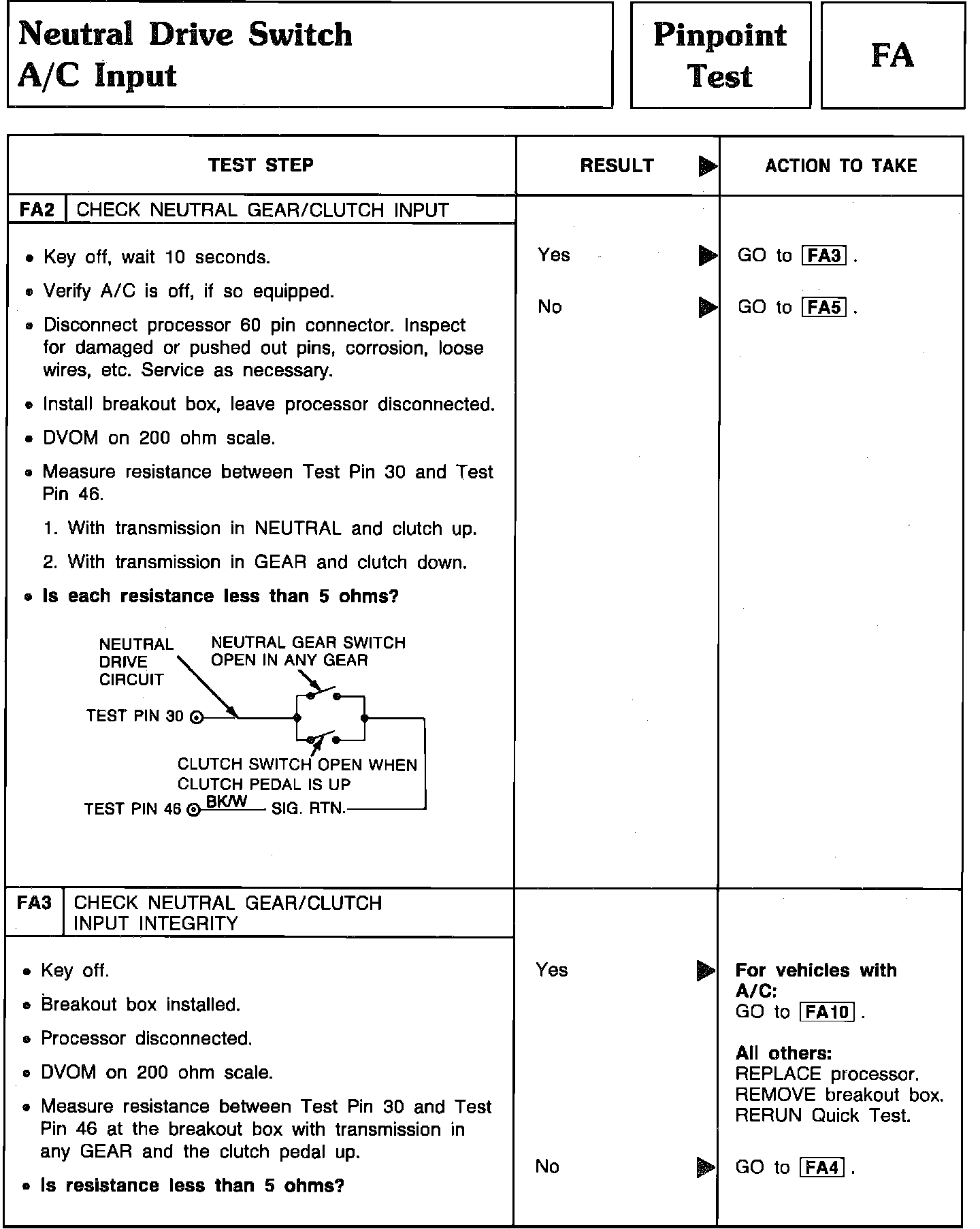 Pinpoint Test FA2 & FA3 - Neutral Drive Switch A/C Input: