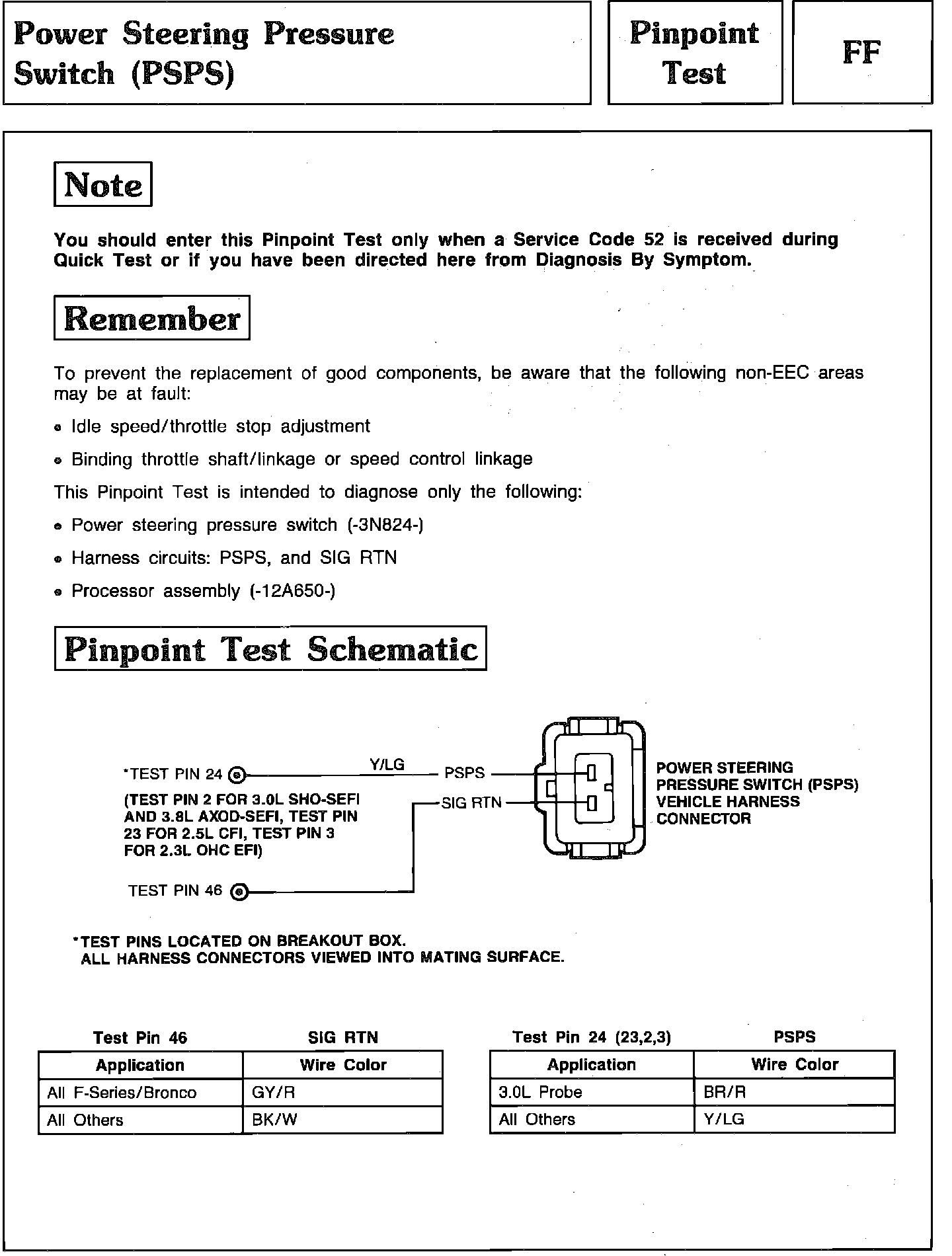 Pinpoint Test FF - Power Steering Pressure Switch (PSPS):