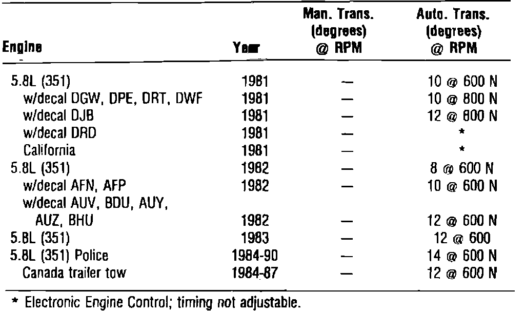 Ignition Timing: Specifications