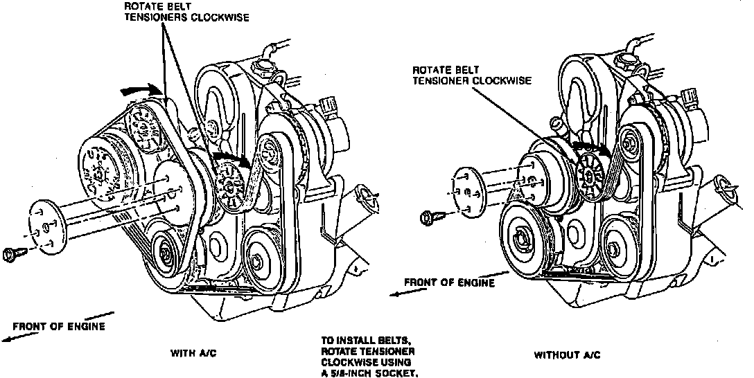 3. Install new belt over pulleys. Ensure that all V-grooves make proper contact with the pulley.