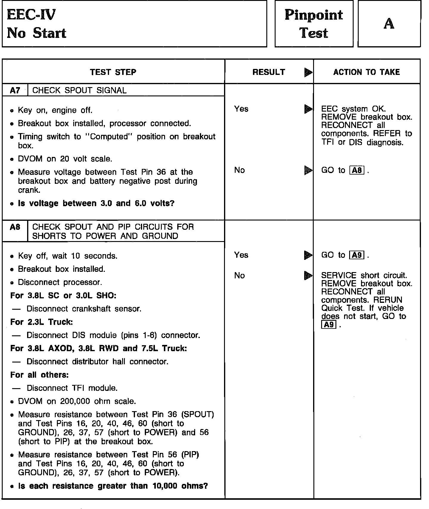 Pinpoint Test A7 & A8 - EEC-IV No Start: