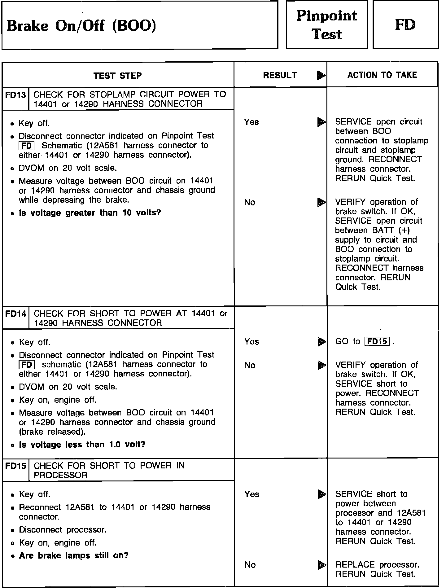 Pinpoint Test FD13 Thru FD15 - Brake On/Off (BOO):