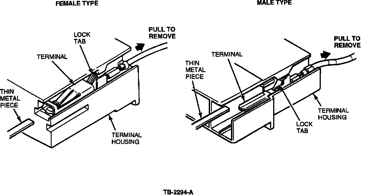 NOTE: PLASTIC ELECTRICAL WIRE CONNECTORS ARE NOT AVAILABLE FROM THE PARTS SYSTEM.