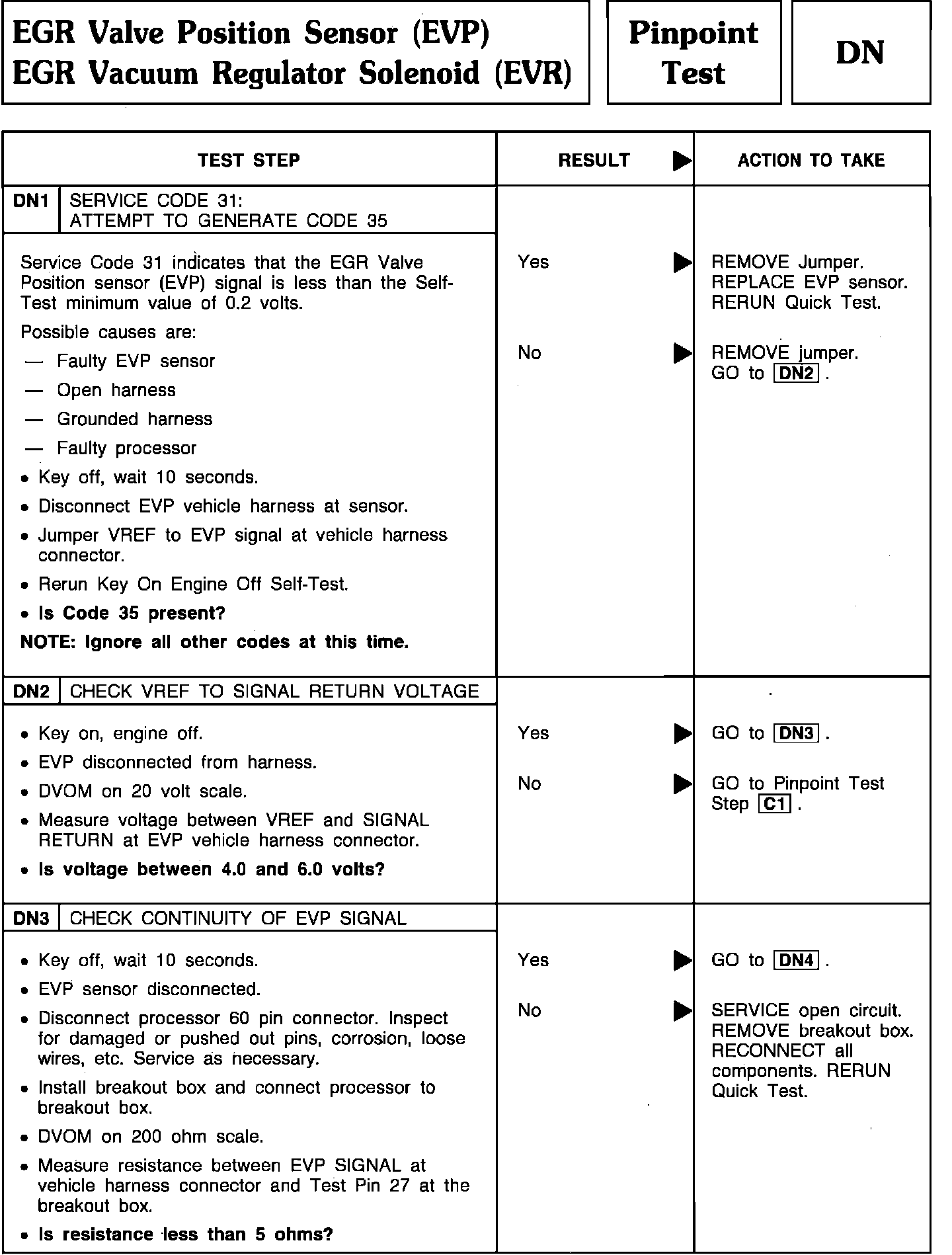 Pinpoint Test DN1 Thru DN3 - EGR Valve Position Sensor (EVP)/EGR Valve Regulator (EVR):