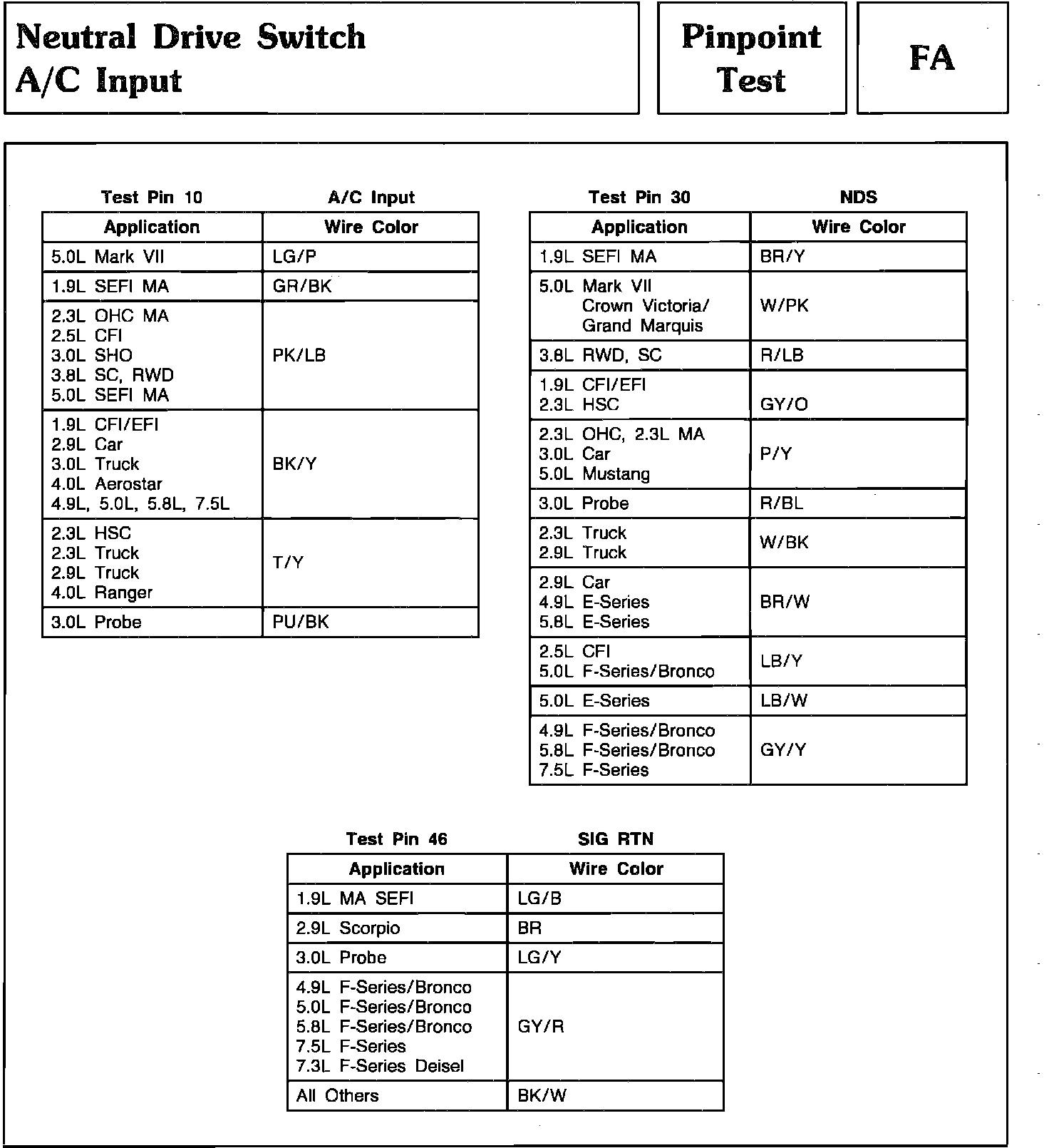 Pinpoint Test FA - Neutral Drive Switch A/C Input: