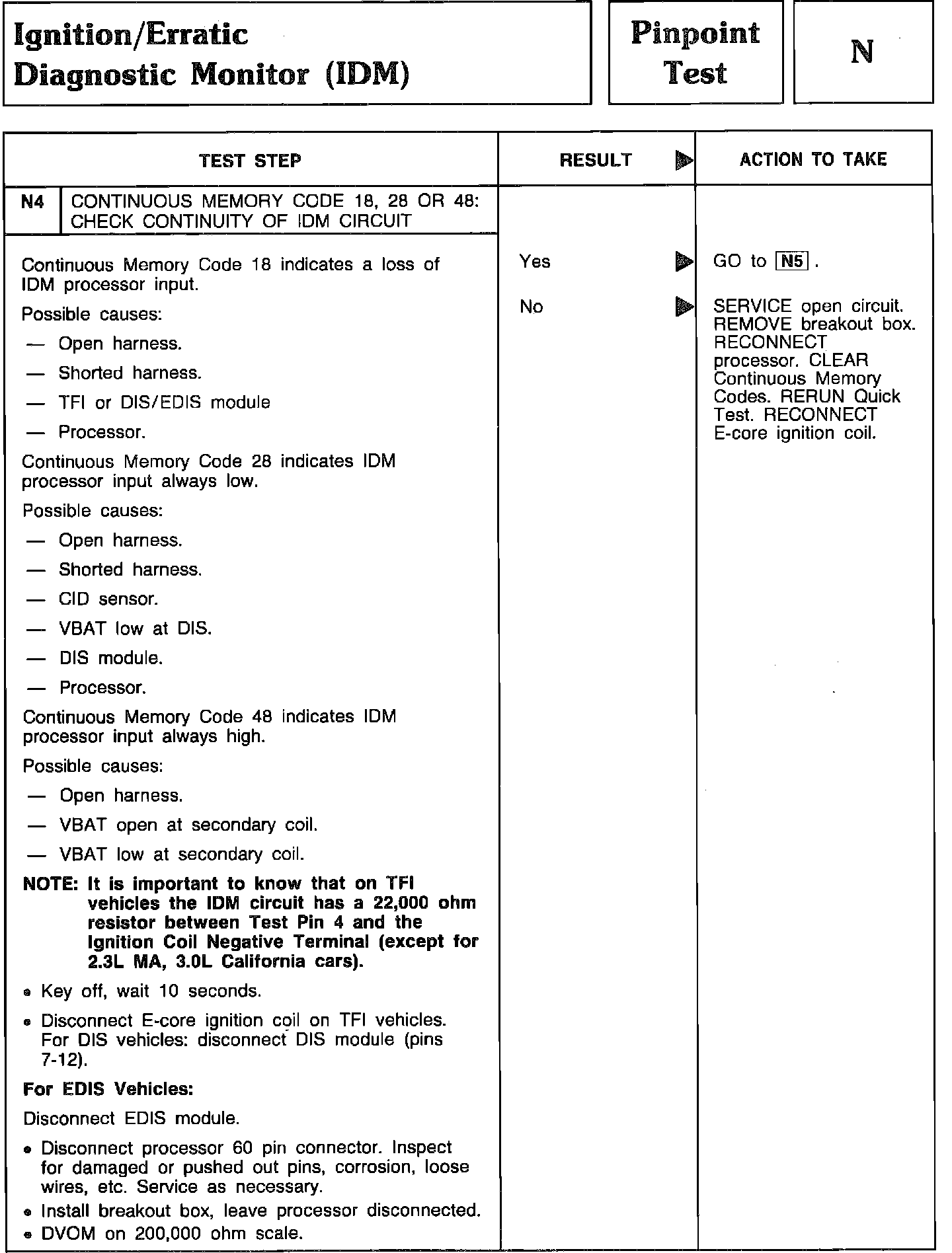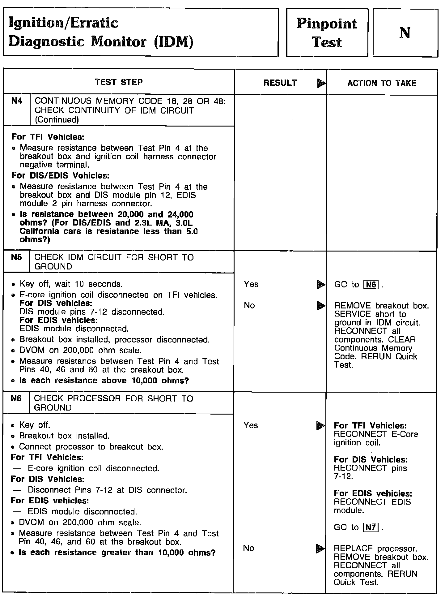 Pinpoint Test N4 (Continued) Thru N6 - Ignition Diagnostic Monitor (IDM):