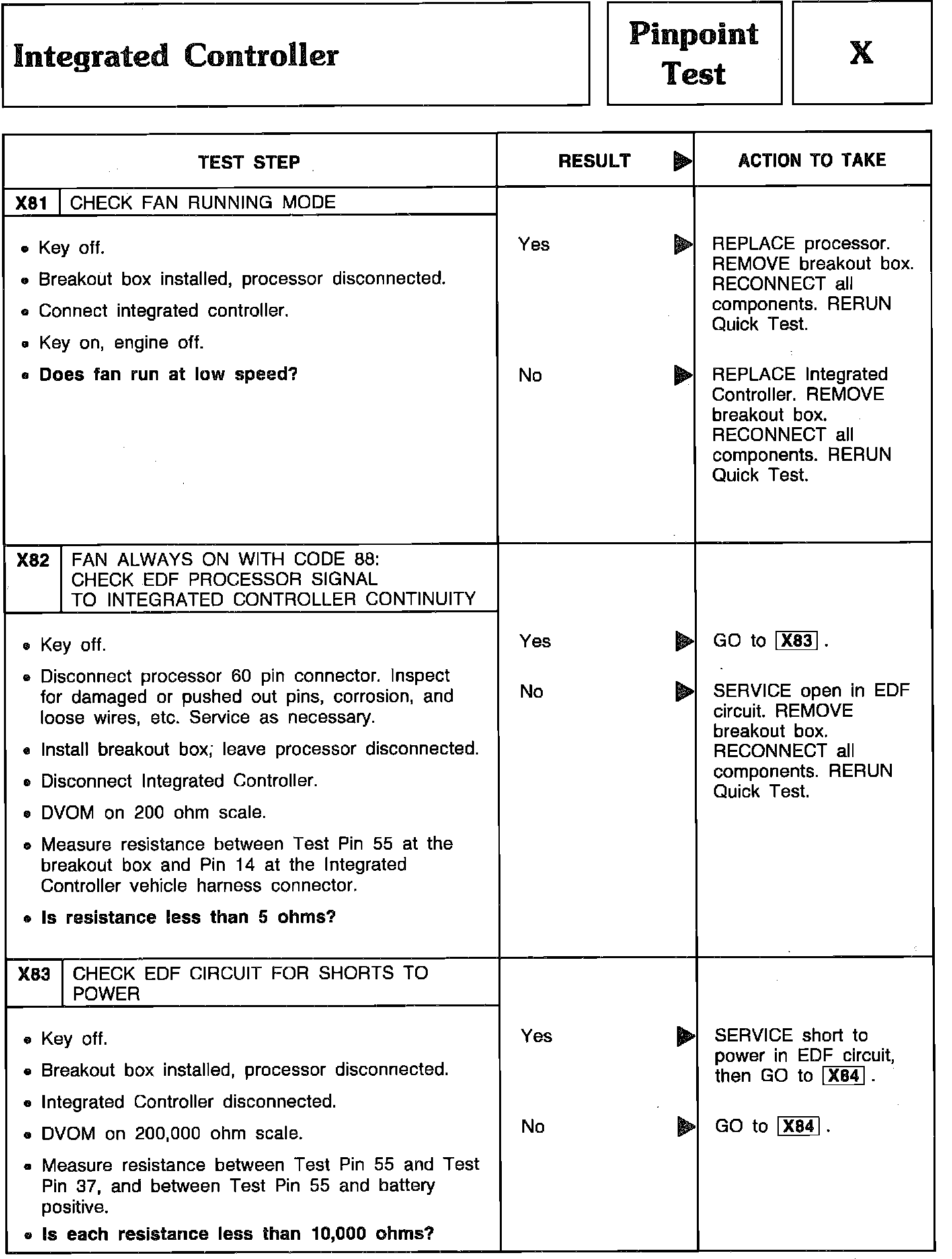 Pinpoint Test X81 Thru X83 - Integrated Controller: