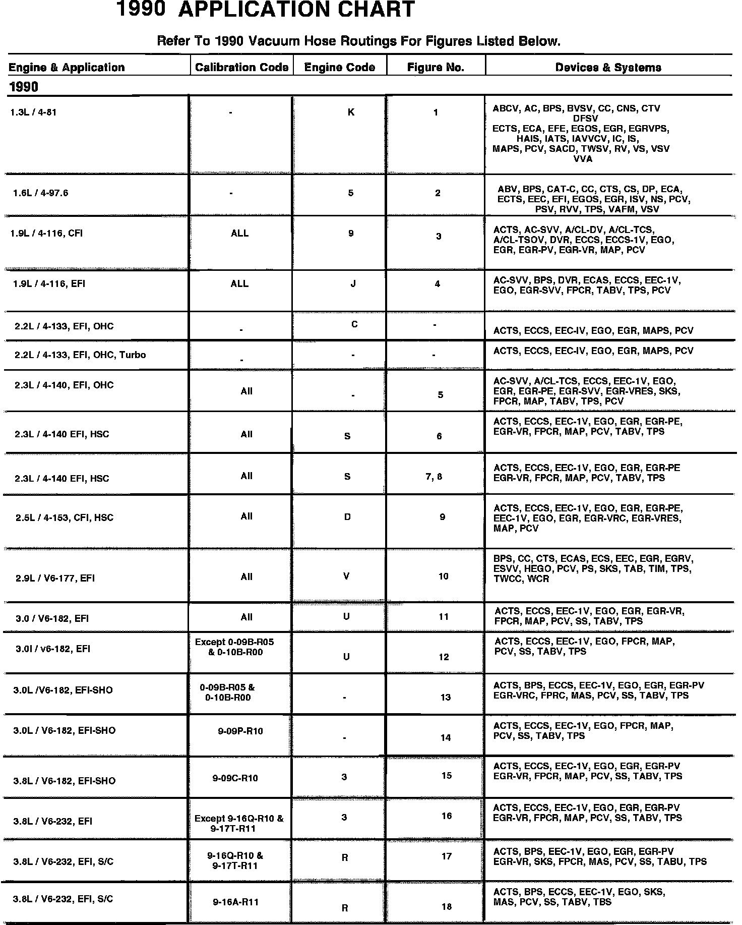 Emission System Application Chart