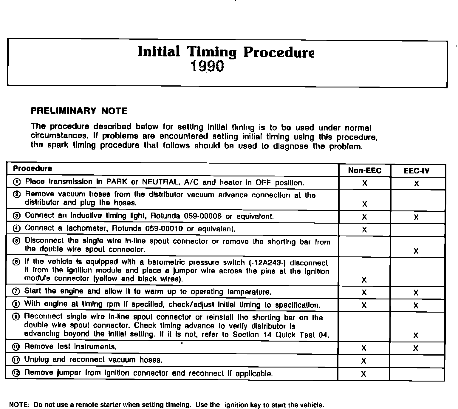 Initial Timing Procedure: