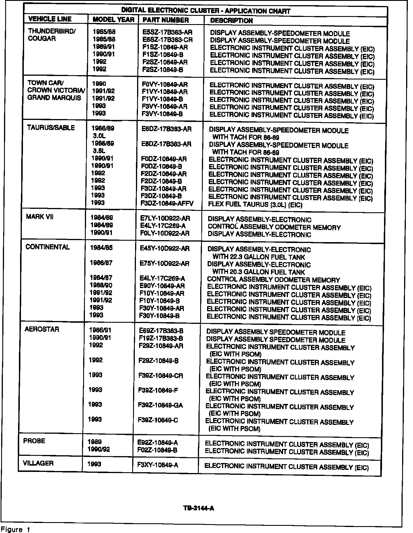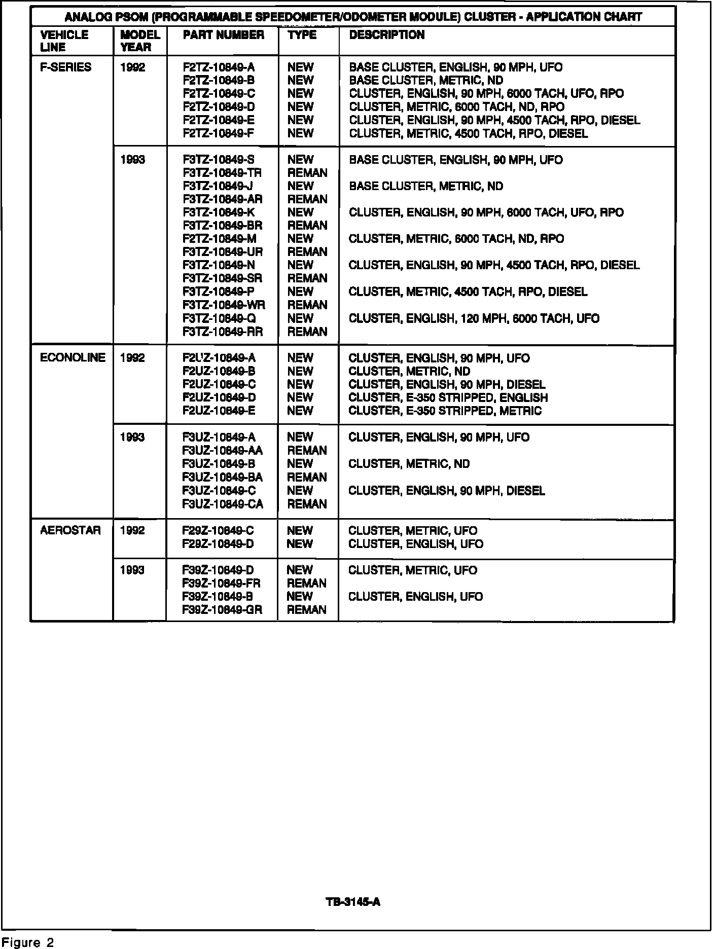 When ordering an Analog PSOM cluster or 1992-93 Aerostar EIC, refer to Figures 1 and 2. The Service Center will need additional information concerning the PSOM Conversion Constant. This constant is important for correct vehicle performance. Please refer to the following procedures in your 1993 Body/Chassis Service Manuals for determining or changing the PSOM conversion constant. These procedures apply to both 1992 and 1993 vehicles equipped with PSOM clusters.